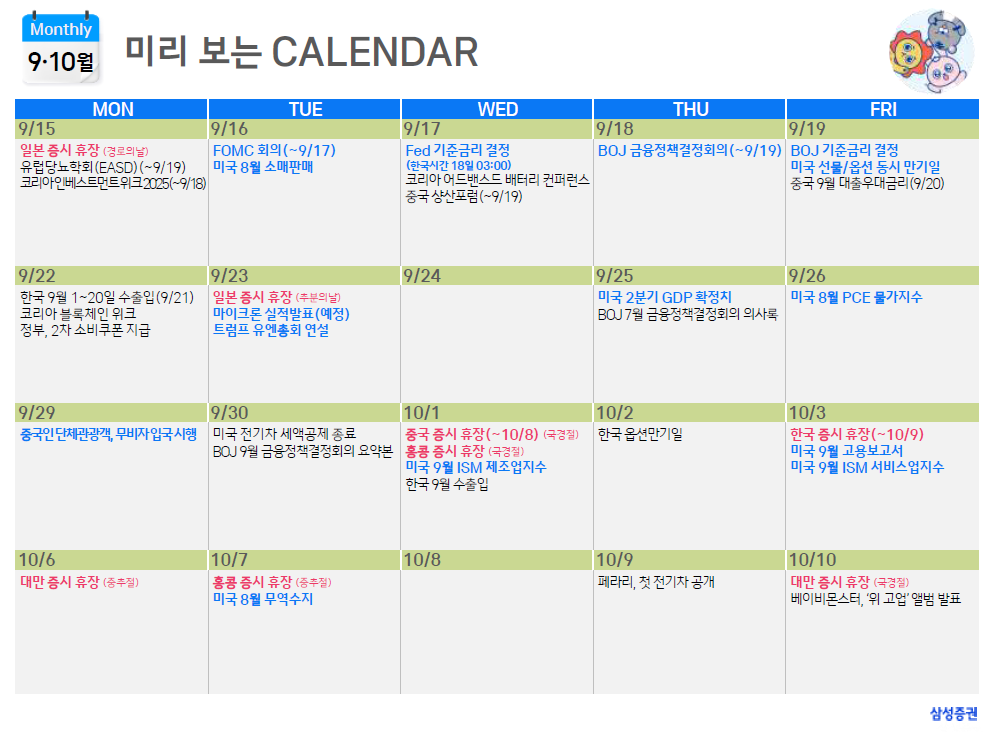 10. 다음 주 주요 일정 (2025년 9월 9일~13일)