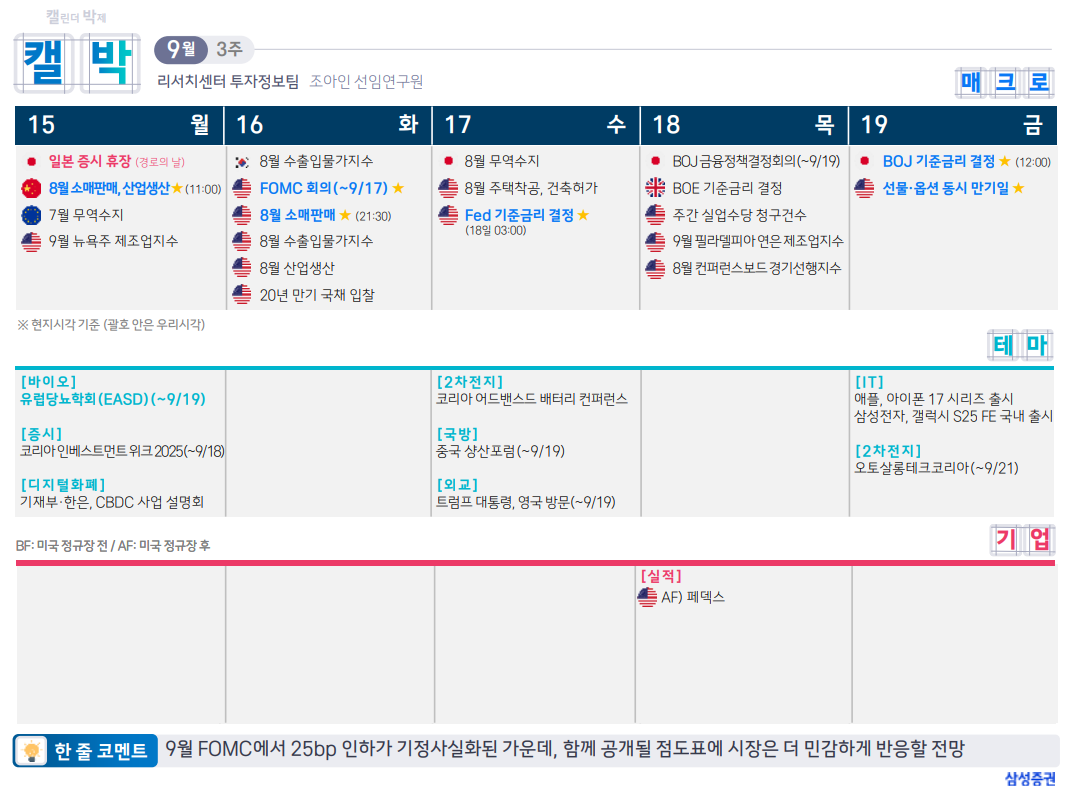 11. 다음 주 주요 일정 (2025년 9월 16일~20일)