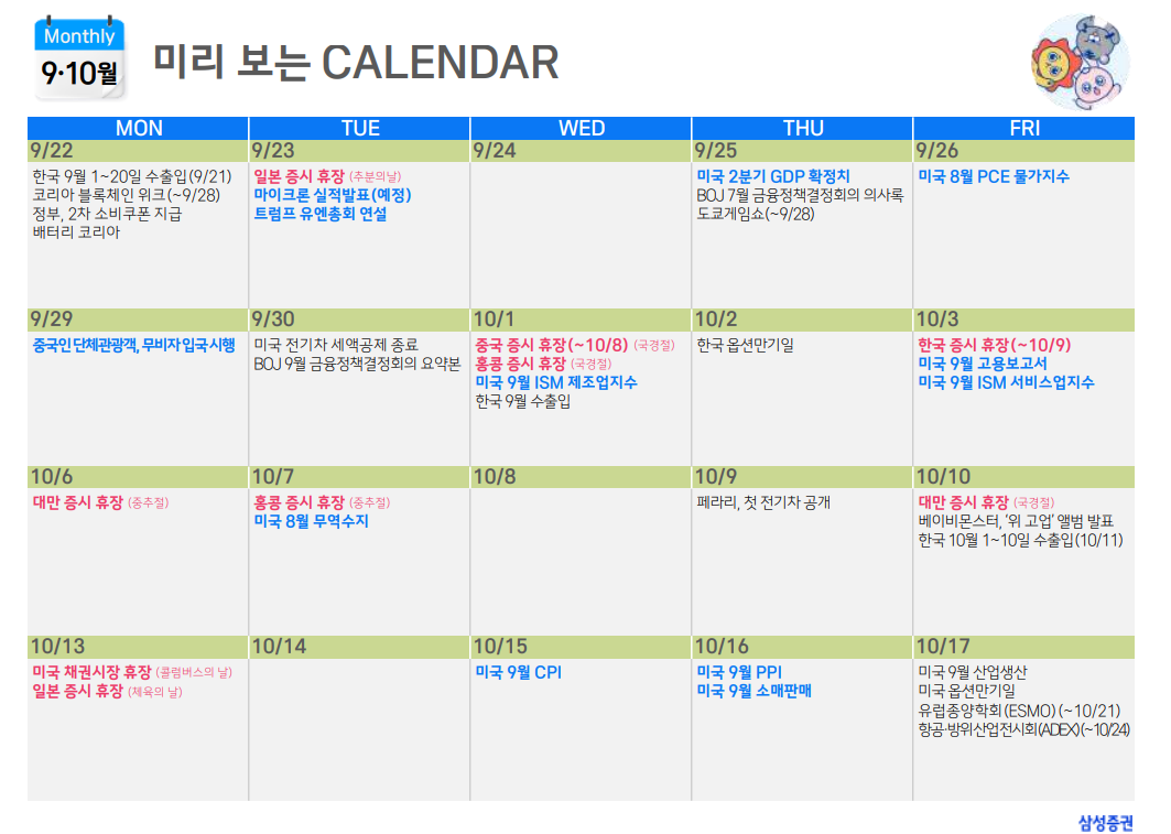 증시 주요 캘린더