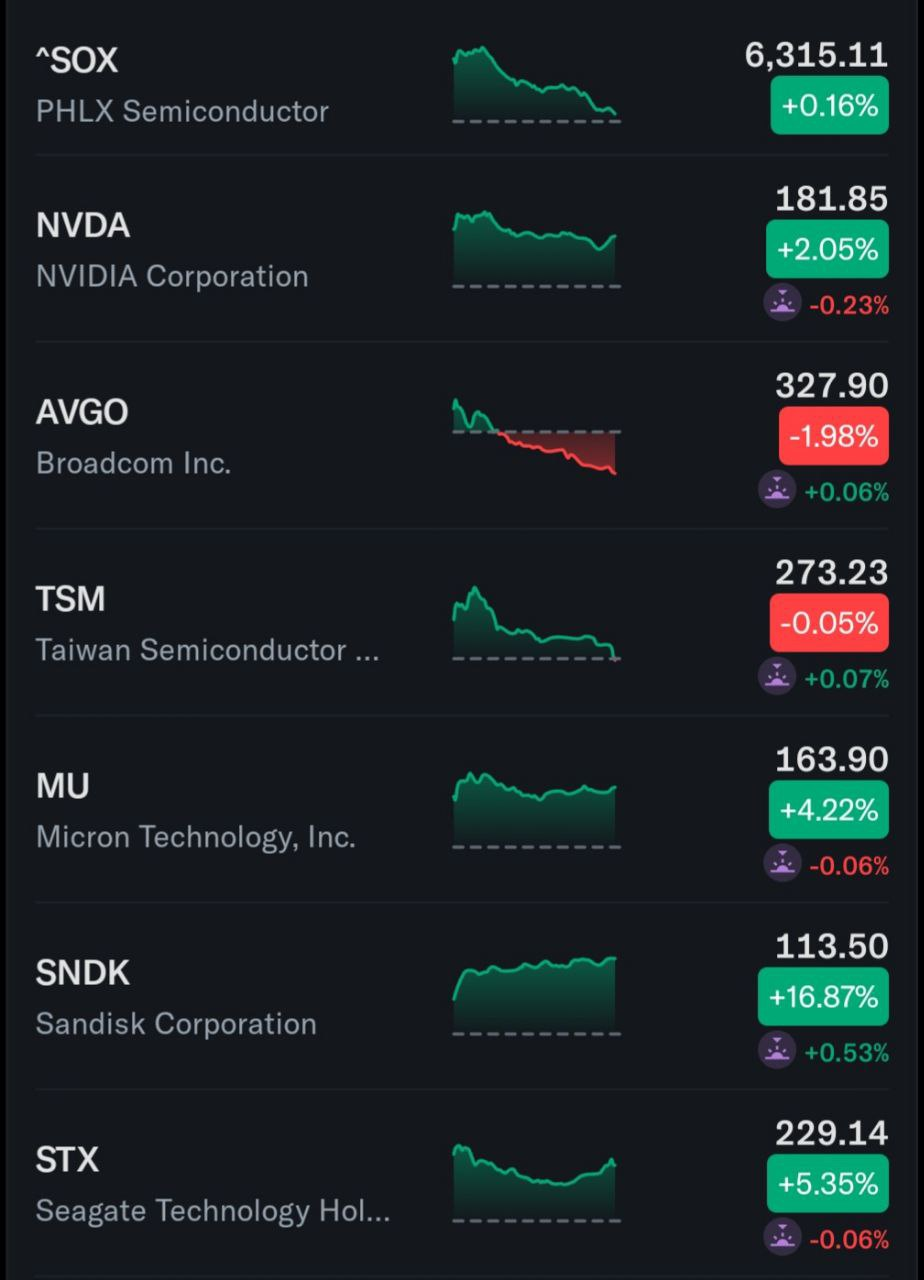 - 웨스턴디지털 (WDC +9.23%), 시게이트 (STX +5.35%): AI 기반 수요 증가 전망에 따라 목표주가 상향 조정 소식이 전해지며 급등.
