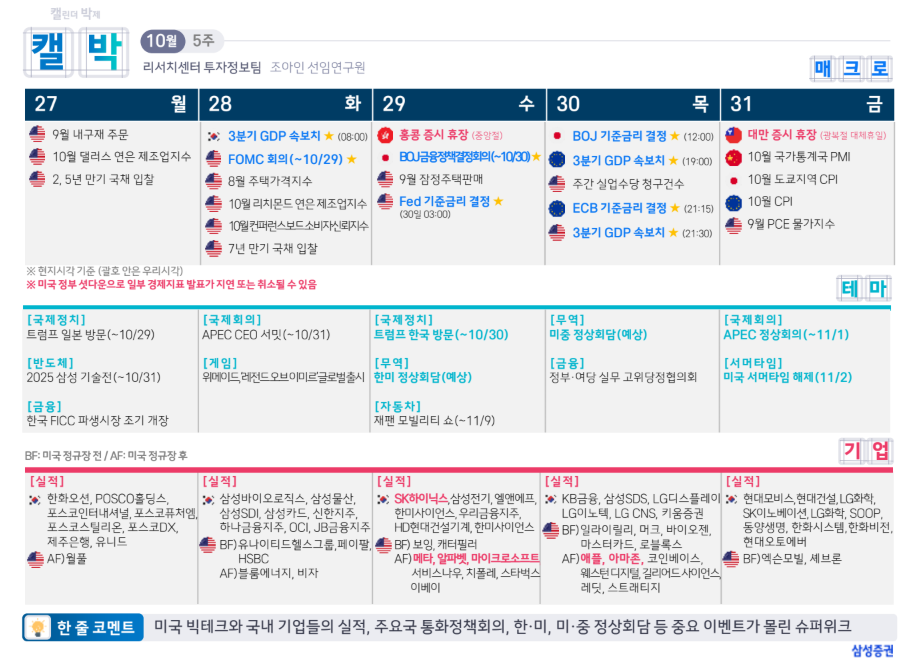 증시 주요 캘린더(Earnings)