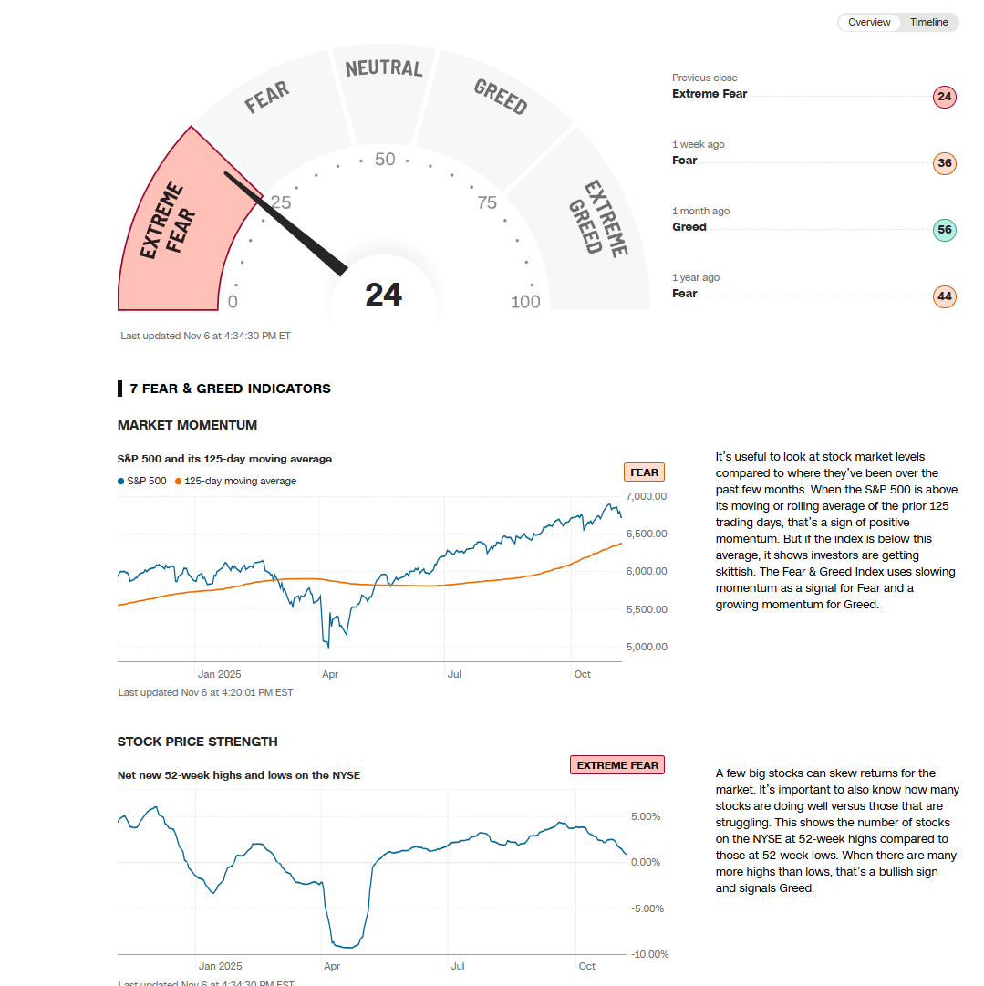 - CNN 심리 - 매도(📉) / 시장 - 하락(📉)