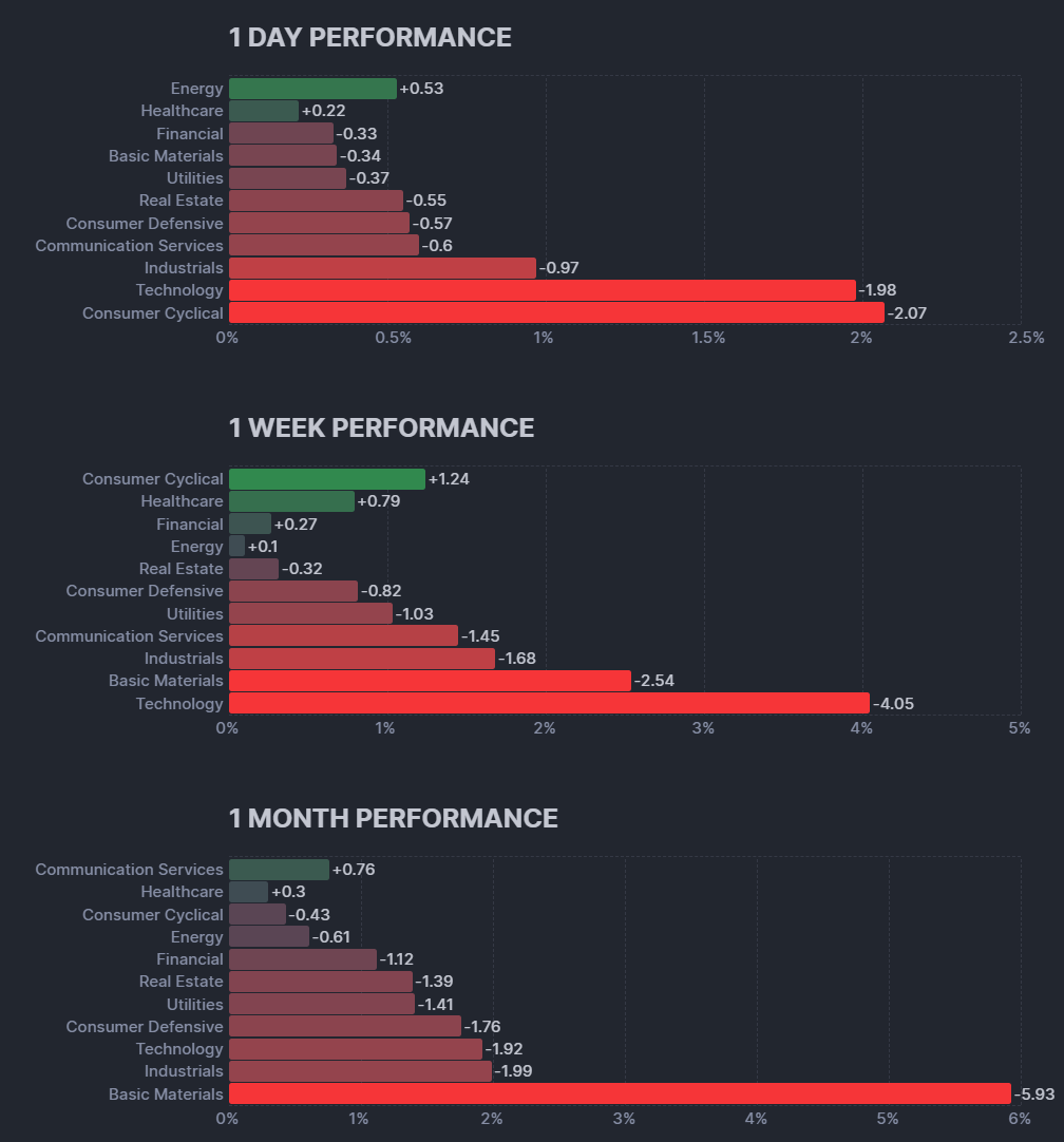 - Communication Services Select Sector SPDR Fund (XLC): -1.75% 하락. 대형 기술주의 부진과 고평가 우려가 섹터에 부정적인 영향을 미쳤습니다.