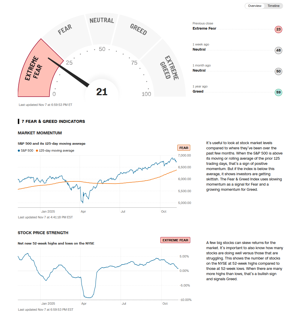 - CNN 심리 - 매수 (📈) / 시장 - 하락 (📉)