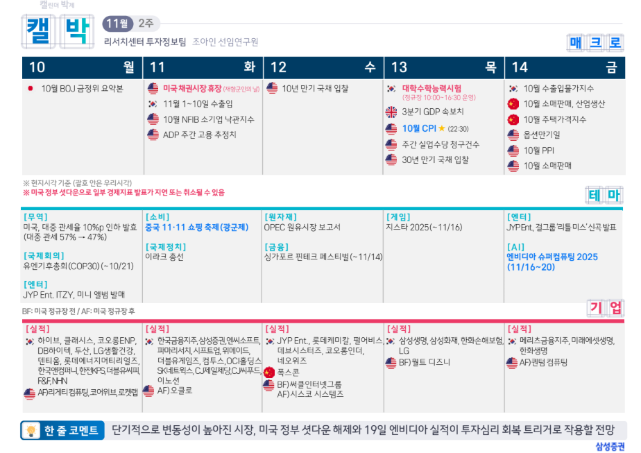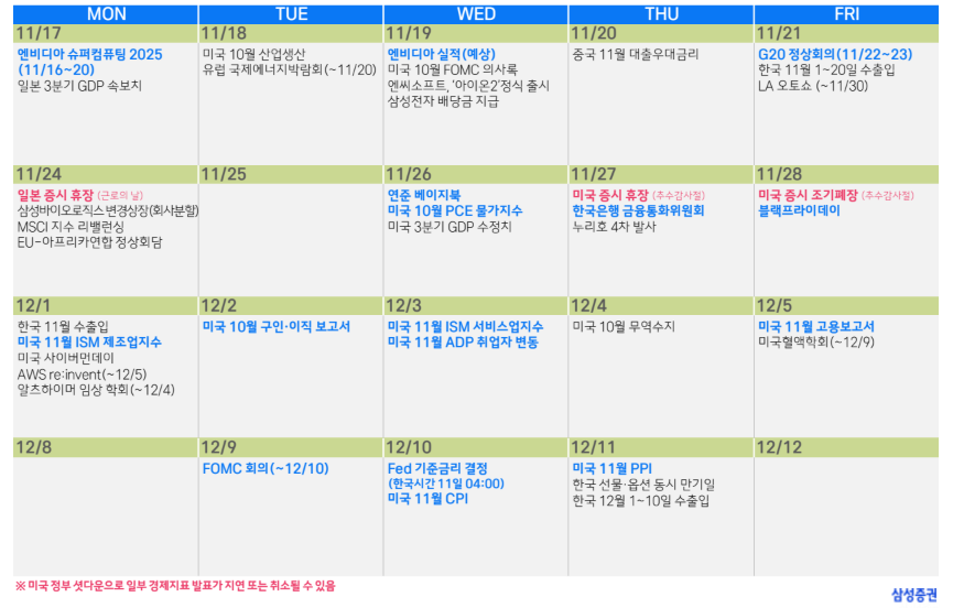 📅 주요 일정 (2025년 11월 12일~11월 16일)