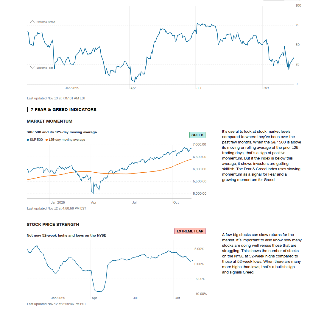 - CNN 심리 - 매수 (📈) / 시장 - 하락 (📉)