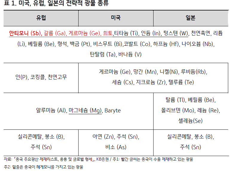 대체가 어렵다보니 미국, 유럽, 일본 3개국이 모두 안티모니를 전략적 광물로 지정/관리 중